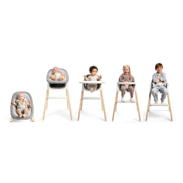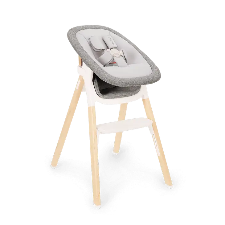 From quiet cuddles to first meals, this BRYN highchair and newborn rocker bundle brings baby into the heart of family life with intuitive function and timeless design. Crafted with sophistication, the highchair adds heirloom-worthy charm to your dining space. At the same time, the newborn rocker transitions from a soothing seat to a highchair attachment for early moments of connection.